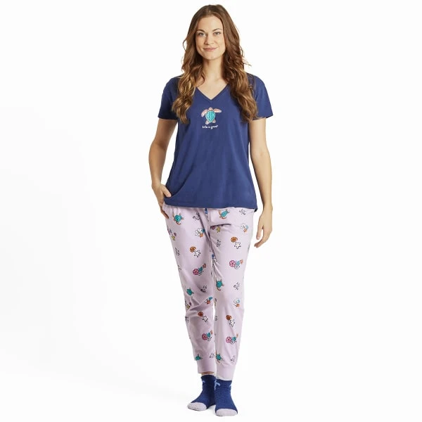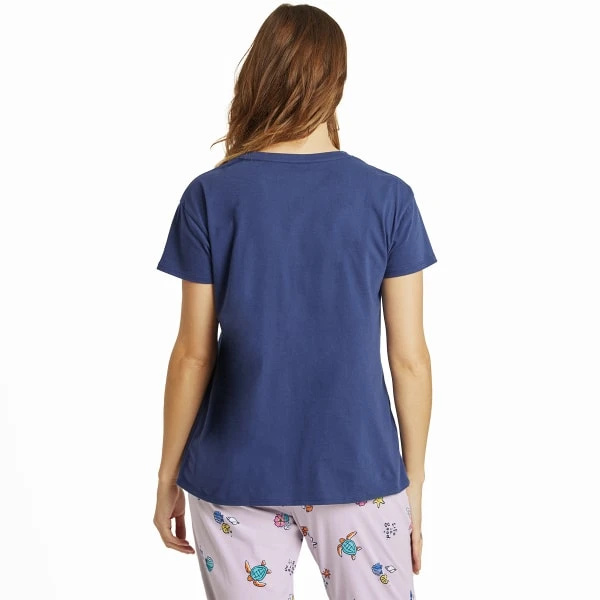 You’re getting sleepy (very sleepy) in this 100% cotton jersey sleep tee. Snuggle up soft with v-neck styling for added comfort, this one will have you reaching for the snooze button.