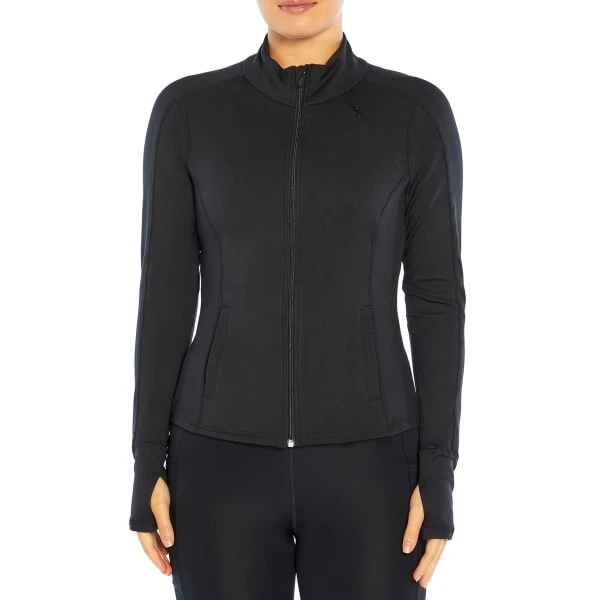 Unique in its construction, this soft, zip-front jacket features a funnel neck, front slanted, on-seam welt pockets, front and back style seams, thumbholes, and cool single phone pocket at one front shoulder.