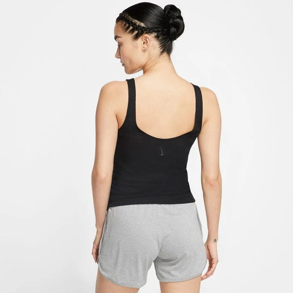 The Nike Women’s Yoga Ruche Tank combines soft, ribbed fabric with sweat-wicking technology to keep you dry and comfortable. There’s a little bit of stretch and ruching at the size to keep you in the flow. The higher neckline in the front helps you stay covered through your poses. Nike Dri-FIT technology moves sweat from your skin for quicker evaporation, helping you stay dry, comfortable and focused. Ruching on the sides keeps the cut close to your body to stay out of the way while you move. A higher neckline in the front helps you stay covered during downward dog and other stretches. A lower cut on the back makes it breathable.