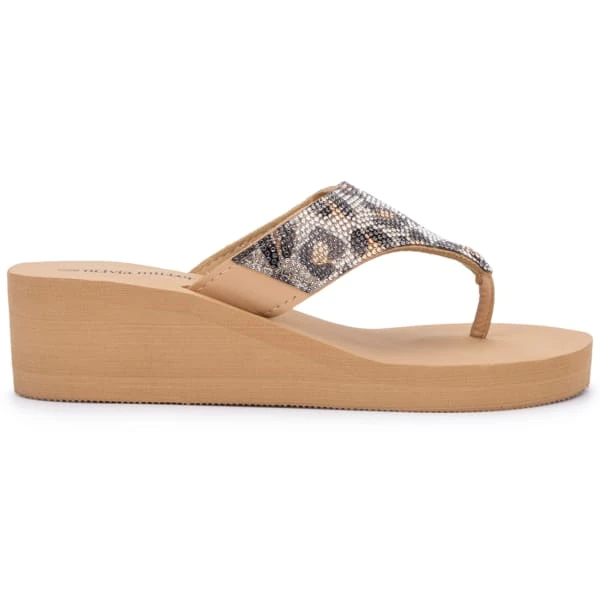 These Olivia Miller Wedge Sandals feature a fashionable upper, between-the-toe thong design, and an elevated heel.