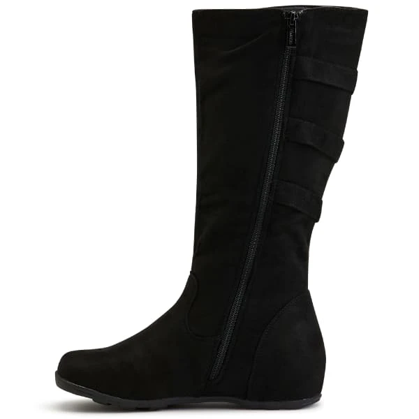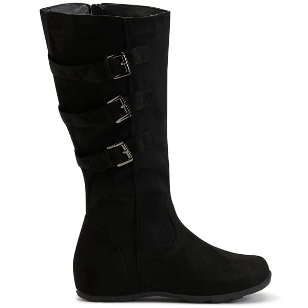A tall boot with 3 buckles, the Sadler from Wanted Shoes dresses up a pair of jeans when the weather gets a little chilly.