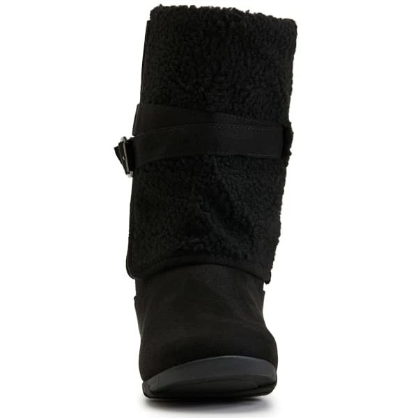 The Wanted Squall features a buckle and strap accent with faux-fur details. The lightly padded insole is made for everyday wear